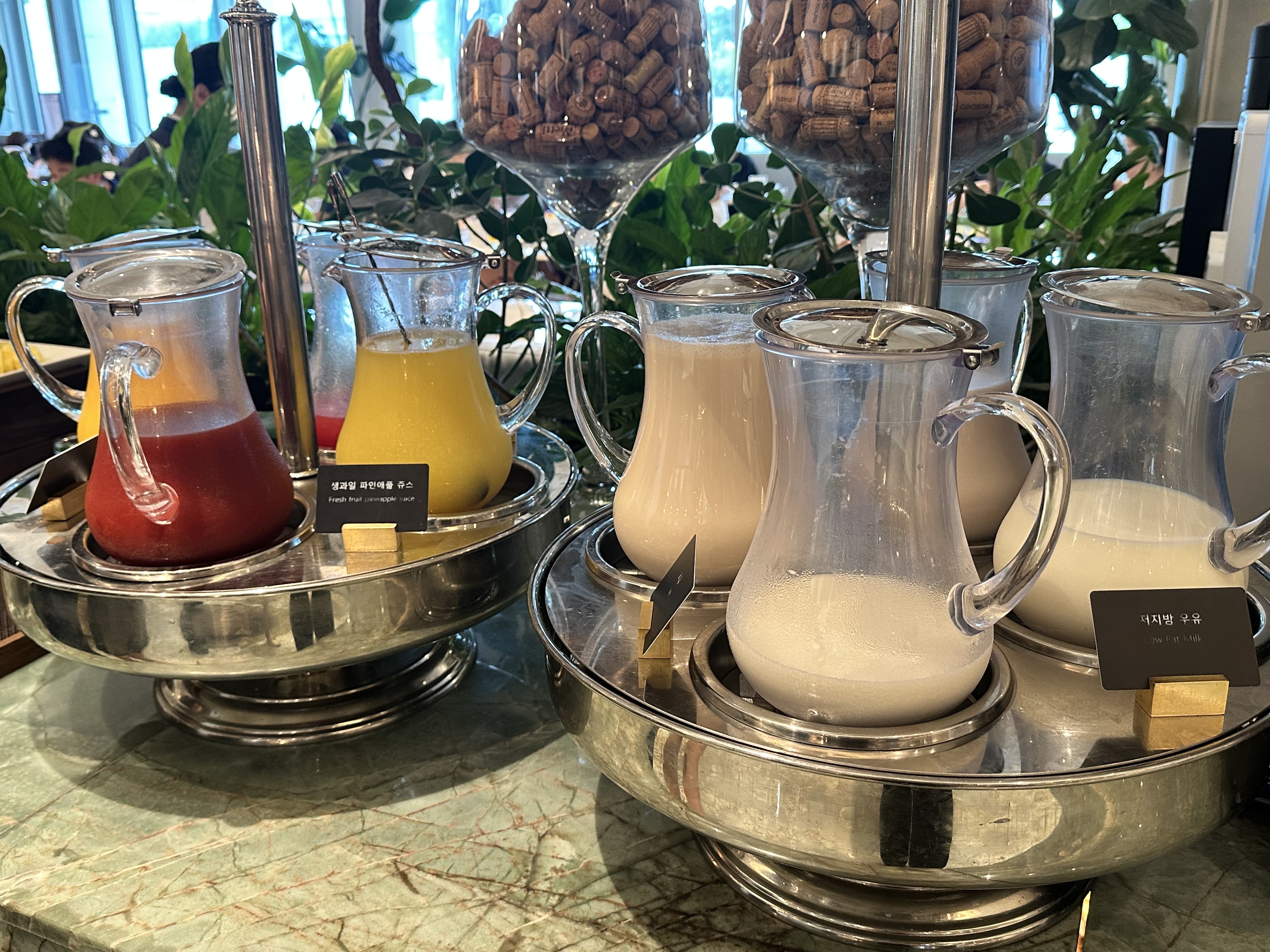 - 커피, 과일 주스, 우유, 생 오렌지 주스