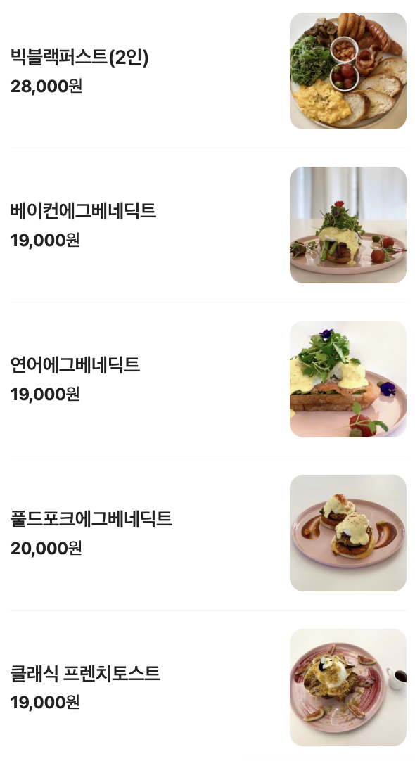 우리는 지금까지 브런치로 빅 블랙퍼스트, 베이컨 에그 베네딕트, 폴드포크 에그 베네딕트, 클래식 프렌치토스트를 먹어봤는데, 다 너무 맛있었다.