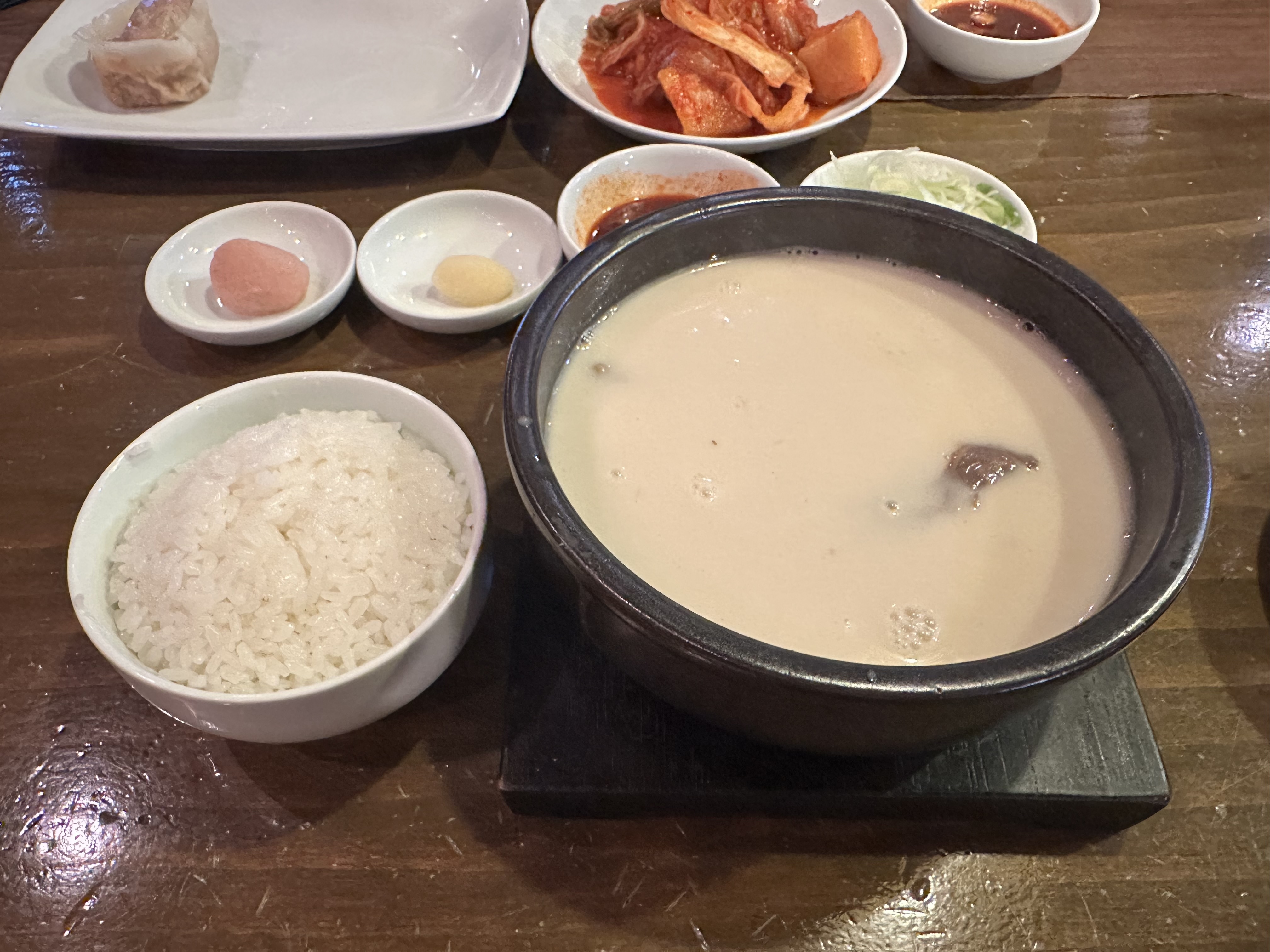 다른 메뉴도 다 맛있어 보였지만 우리는 거대 곰탕의 인기 메뉴인 농후하고 더 진한 뽀얀곰탕 2개와 만두를 주문해서 먹었다.